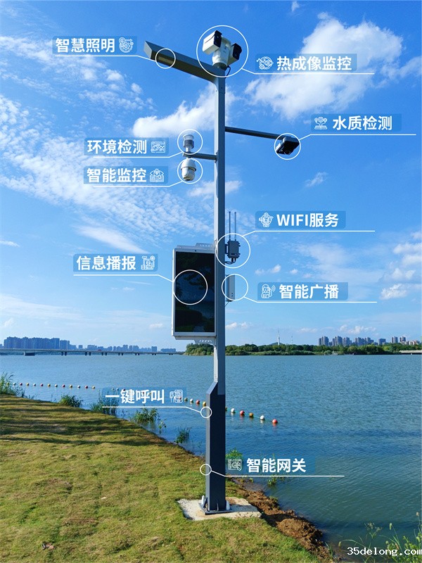 除普通智慧灯杆具备的智慧照明、显示屏、紧急求助、广播、视频监控、WiFi热点等常规功能外,taptap点点官网F1亚洲区自主研发的智慧一体杆创新集成了高光谱水质检测系统、热成像四目云台监控系统、多要素气象环境监测系统等多功能监测模块,进行水质、气象、热成像等数据的实时采集、分析处理、监测异常并提供预警,实现一杆多用,助力提升龙子湖幸福值。